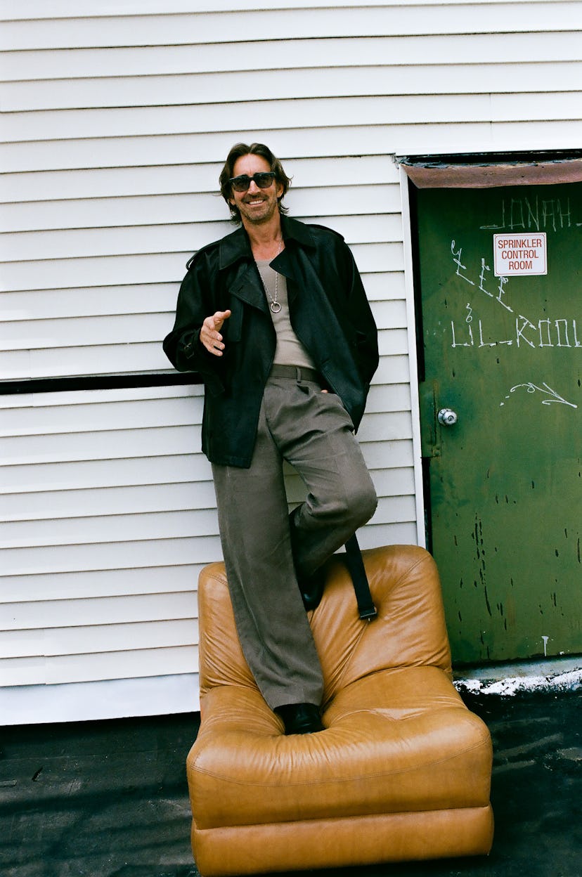 He has to go get a Citi Bike to head downtown to meet his stylist, Michael Fisher, to figure out his looks for The Running Man press tour. (TBD on whether masks will be involved.) Before he goes, he taps on my phone, which has been recording our conversation, for one final mic drop: “Life’s not a sensible business. With that, I have to go before I say all my secrets.” As he leaves, he blows me a kiss through the window.