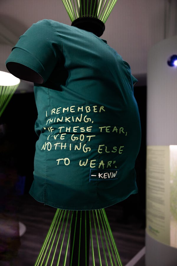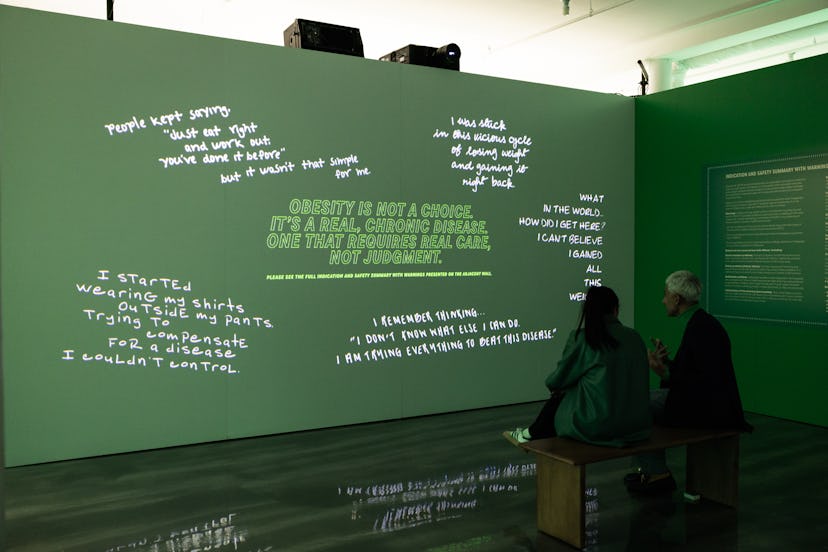 Zepbound, for context, is an injectable prescription medicine for chronic weight management in adults with obesity or overweight with weight-related medical conditions. Knowing that made the installation feel even more resonant, because the exhibit wasn’t just a display of clothes. It was an invitation to see the real people, stories, and stigma behind a medical condition that’s often misunderstood.